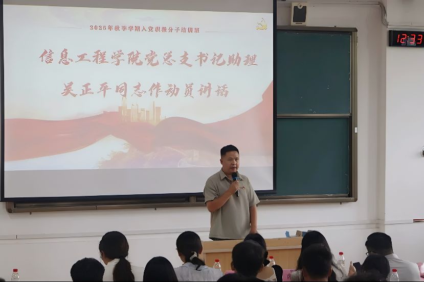 为深入学习贯彻习近平新时代中国特色社会主义思想和党的二十届三中全会精神,全面落实党的教育方针,切实做好入党积极分子教育培养工作,2025年10月13日,信息工程学院党总支在4教4203教室成功举行第41期入党积极分子培训班开班仪式。