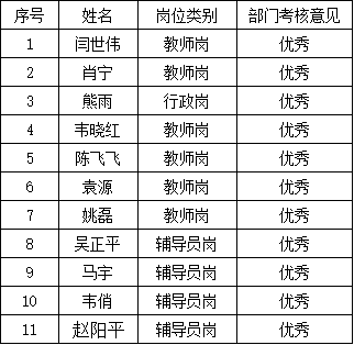 根据《南宁理工学院部门(单位)年度目标管理考核办法》(南理人〔2021〕2号)和《南宁理工学院教职工年度考核管理办法》(南理人〔2021〕1号)文件精神和年度考核工作要求,为加强年度目标考核工作的透明度,确保目标考核结果的真实性、公平性,根据学校相关要求,经各教研室、学工考核推荐,学院审核,拟推荐闫世伟等11位同志为2025年度目标考核优秀个人。现予以公示,公示时间为2026年1月4日至1月6日。