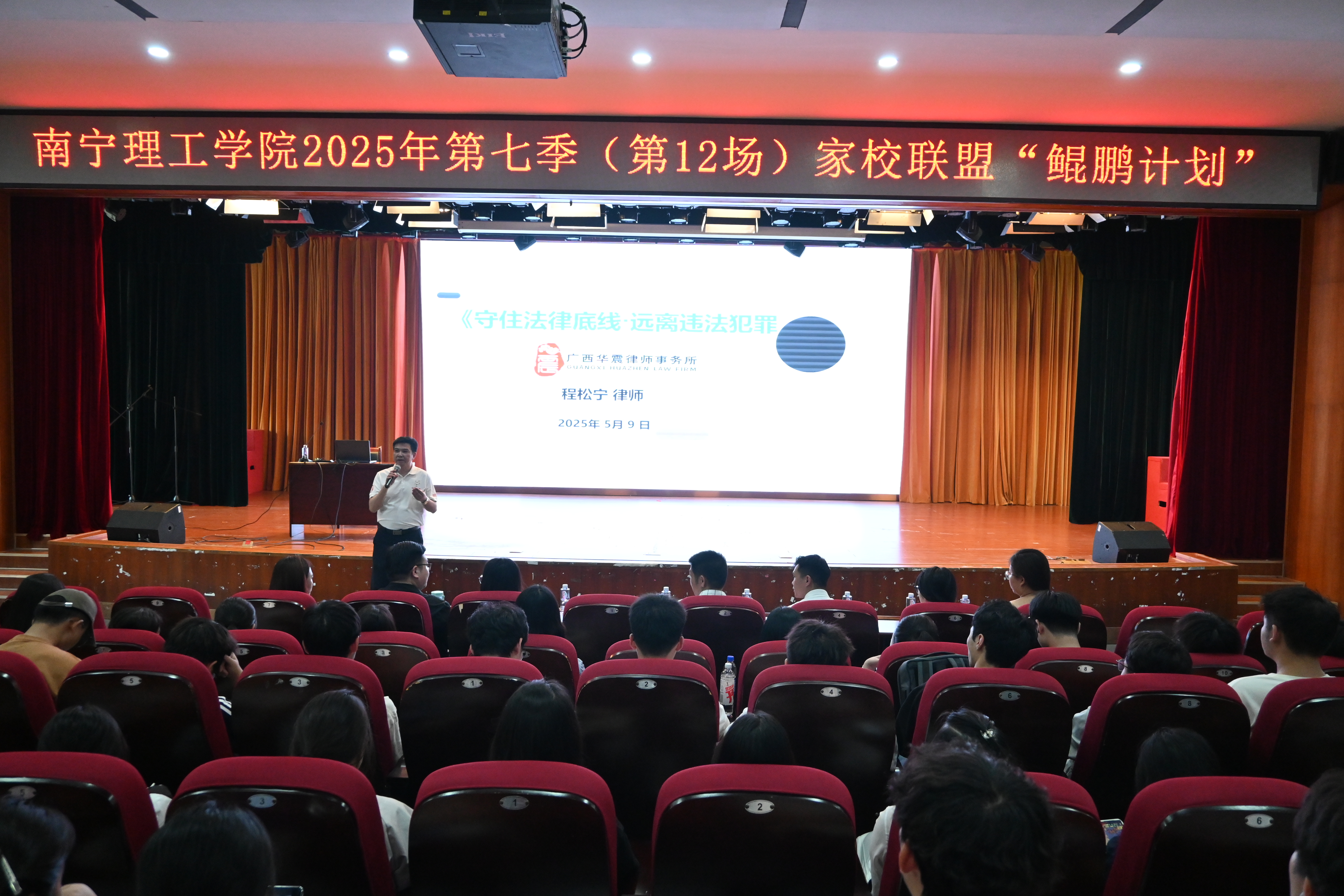 为加强学生的法治教育,增强学生的法治意识,营造良好的校园法治氛围,信息工程学院于5月9日在1626报告厅成功举办“鲲鹏计划”系列讲座之“守住法律底线・远离违法犯罪”专题讲座。
