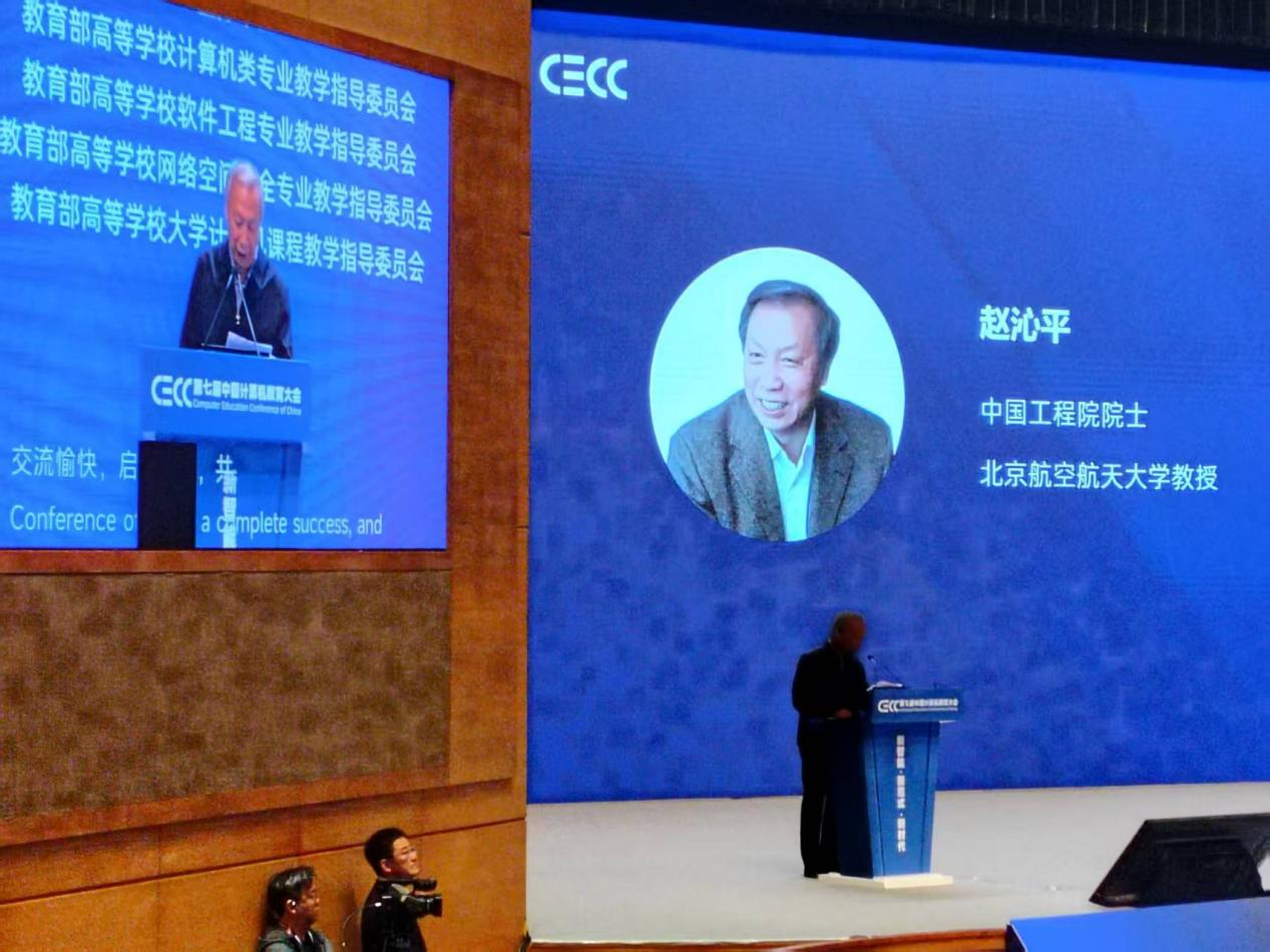 大会开幕式上,教育部领导、中国工程院院士赵沁平、吴建平等嘉宾先后致辞,强调了人工智能时代计算机教育的重要性与紧迫性。美国康奈尔大学名誉教授John Hopcroft、中国工程院院士何友、中国科学院院士王小云等专家分别作了精彩的主题报告,围绕“Proj 101: Improving University Education in China”、“AI 赋能智慧教育”、“密码技术与人工智能安全”等前沿议题分享了真知灼见。这些报告与南宁理工学院新E代数智未来产业学院和信息工程学院“以产业需求为导向,培养应用型技术人才”的办学理念高度契合。