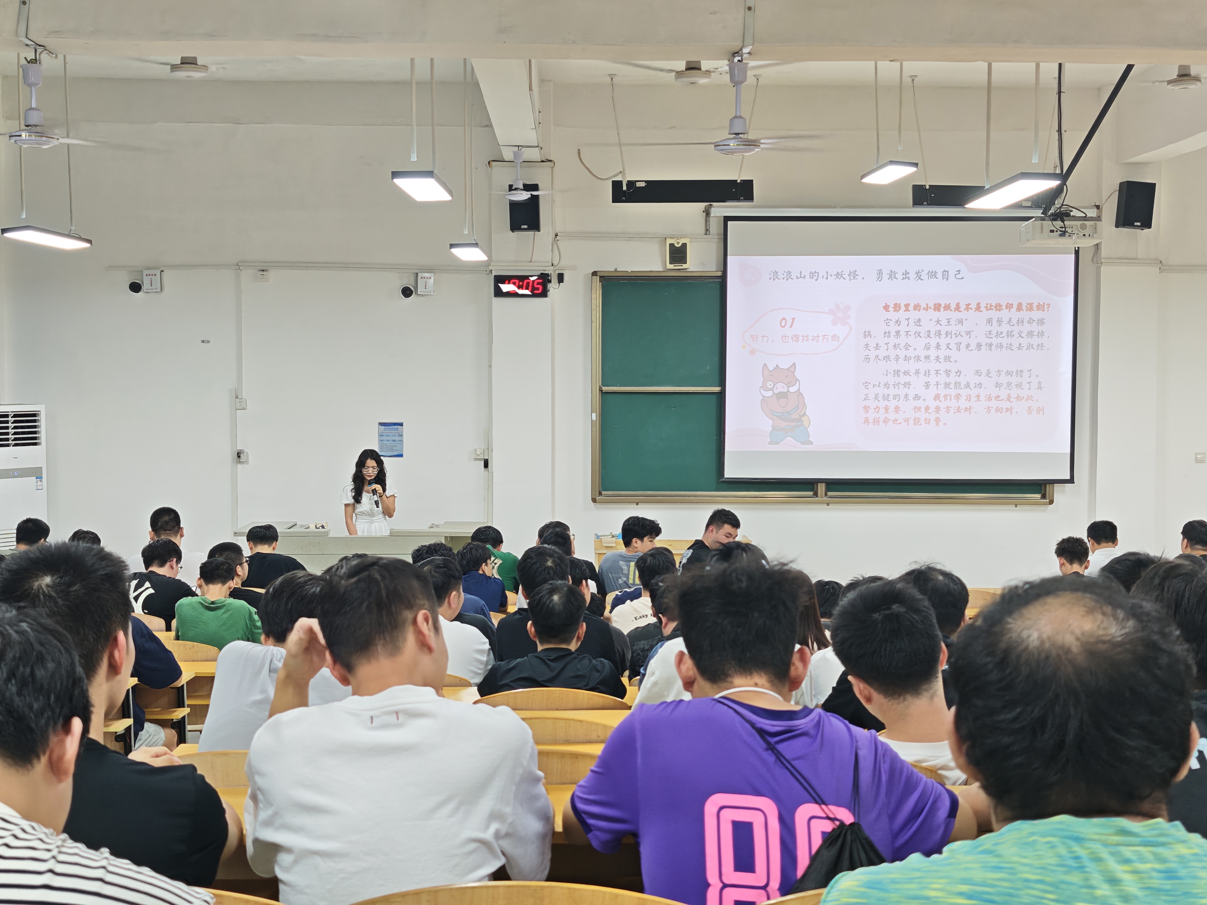 “你是否也像浪浪山的小妖怪一样,迷茫于重复搬砖的学习生活?是否担心自己无法突破现状?”;主题班会上,辅导员们以近期热门动画为切入点,将小妖怪想离开浪浪山的故事与学生成长结合:“大家刚进入大学,可能会面临专业适应、目标模糊的‘浪浪山困境’,但只要敢于尝试,主动突破,就能找到属于自己的新赛道”。鼓励学生打破自我设限,以奋斗姿态解锁青春无限可能。
