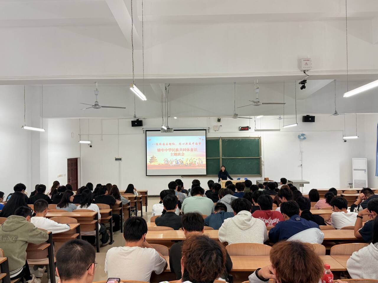 主题团日活动由各班团支书主持开展,形式新颖、氛围浓厚。团支书带领同学们集体学习铸牢中华民族共同体意识相关理论知识,通过观看民族团结主题短片、分享身边民族团结故事等方式,引导同学们进一步增强对伟大祖国、中华民族、中华文化的认同。